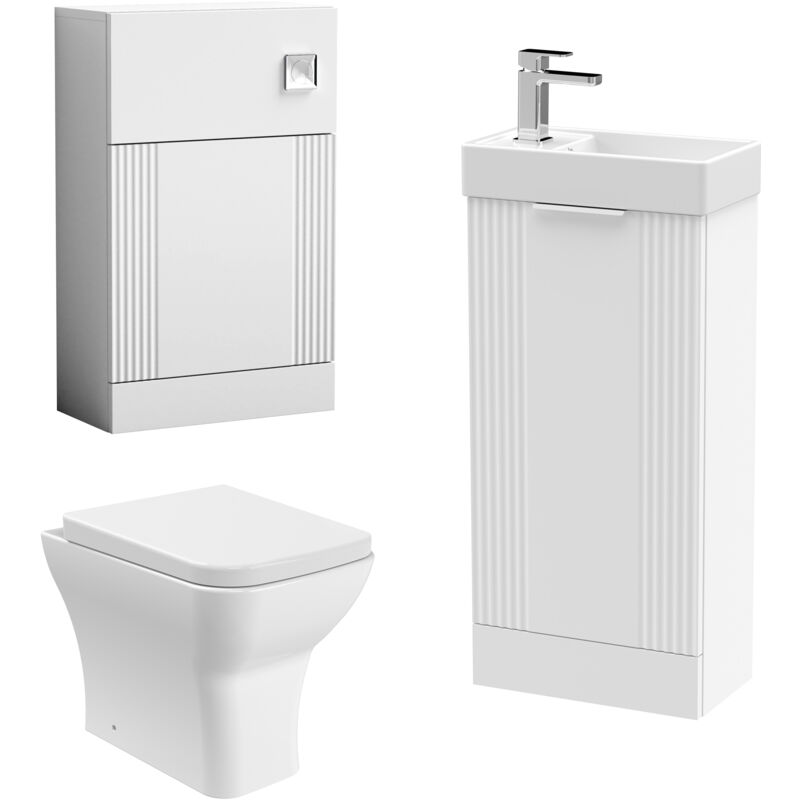 Balterley - Retro Cloakroom Bundle - Fluted Floor Standing Vanity Unit, wc Unit, Cistern, Toilet Pan & Tap - White/Chrome
