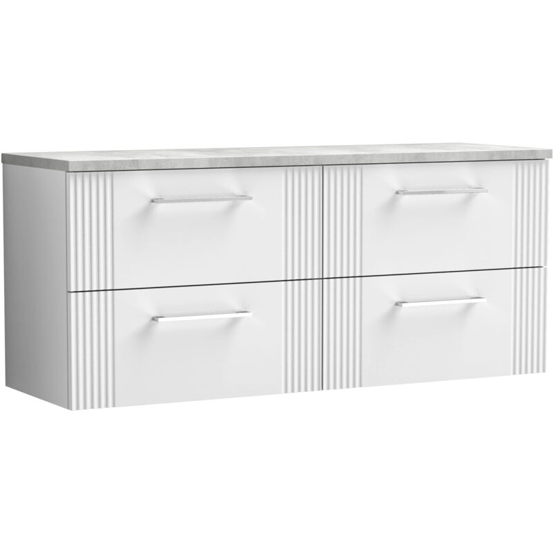 Balterley - Retro 4 Drawer Wall Hung Vanity Unit with Bellato Grey Laminate Worktop - 1200mm - Satin White