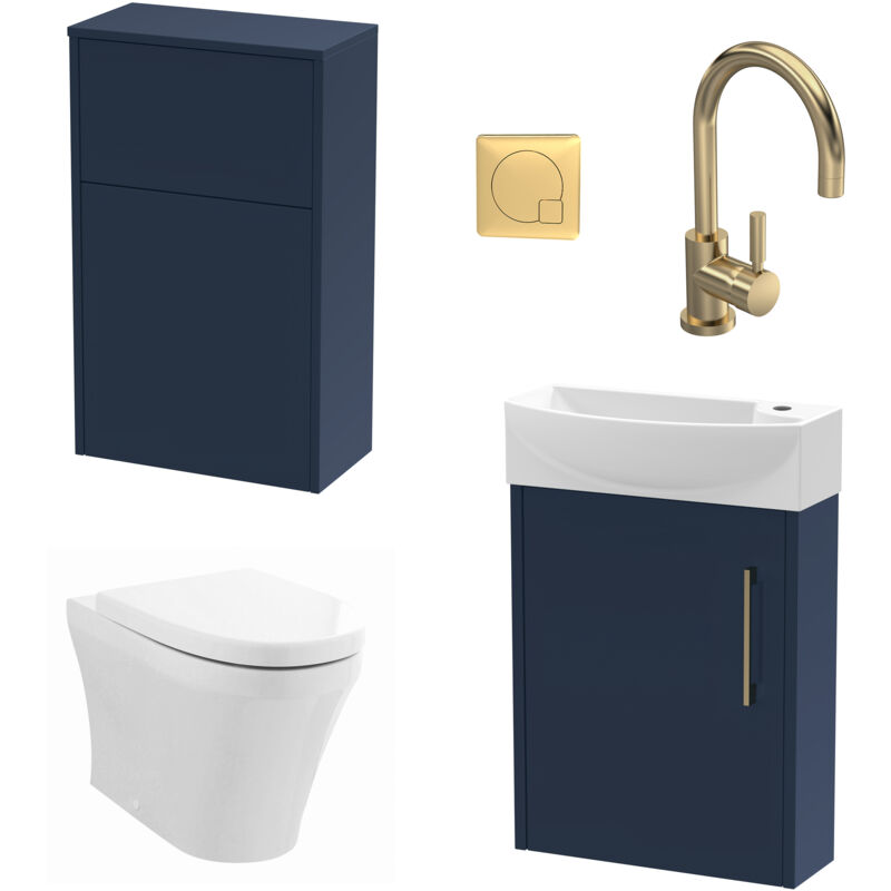 Power Cloakroom Bundle - Left Wall Hung Vanity Unit, Concealed Cistern wc Unit, Toilet & Tap, 440mm - Blue/Brass Balterley