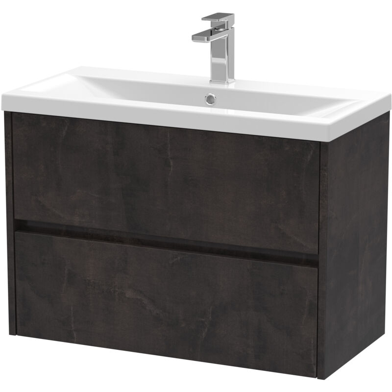 Balterley Square Wall Hung 2 Drawer Vanity Unit & Ceramic Basin, 800mm - Textured Matt Metallic Slate