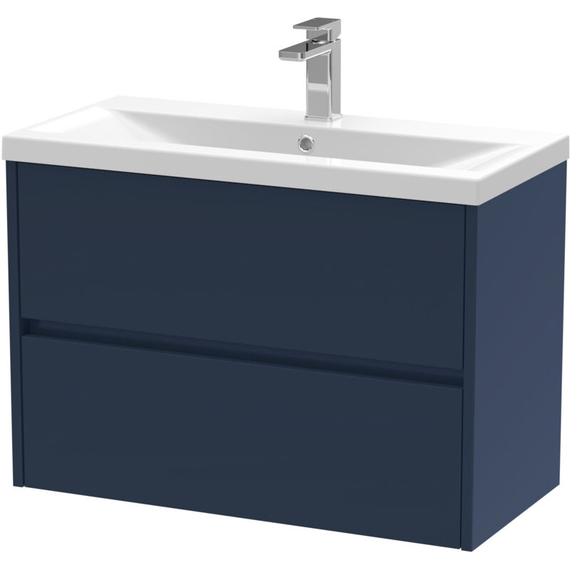 Balterley Square Wall Hung 2 Drawer Vanity Unit & Ceramic Basin, 800mm - Midnight Blue