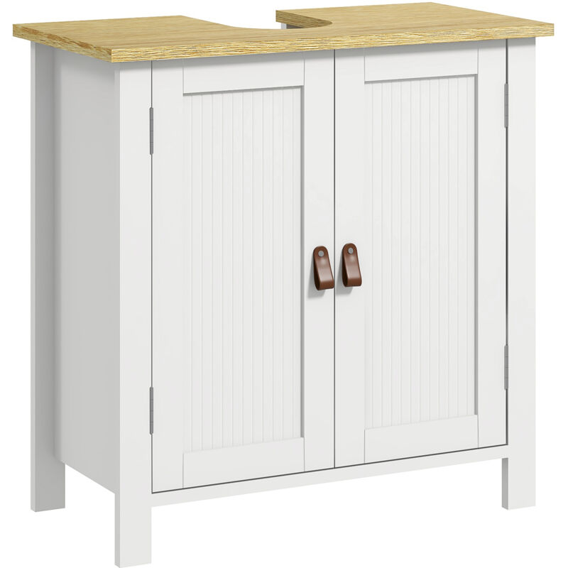 kleankin Under Sink Cabinet Bathroom Vanity Unit with Double Doors and Storage Shelves, 60 x 30 x 60cm, White