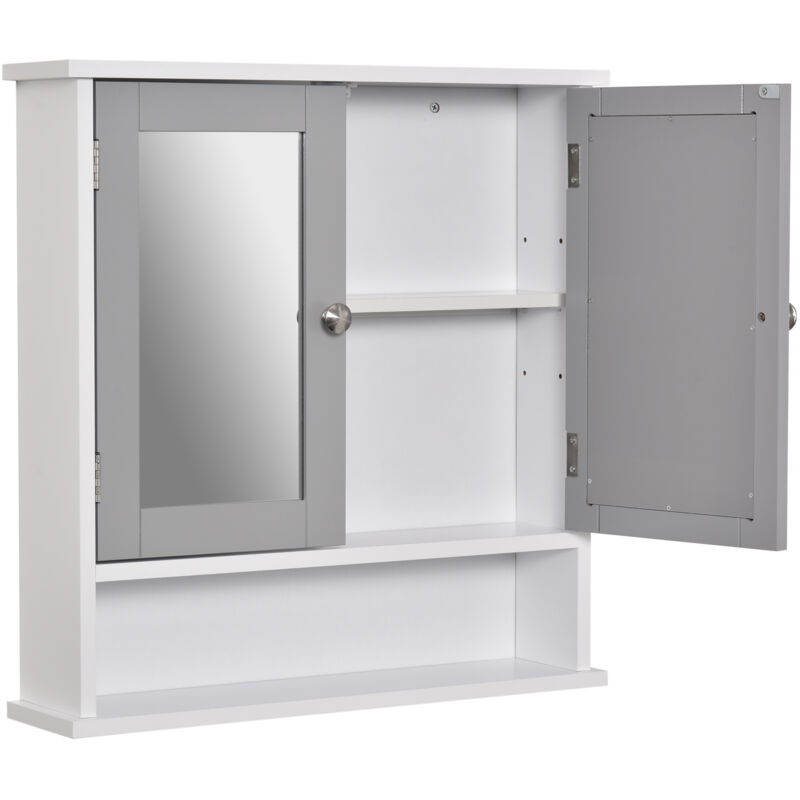 Kleankin Bathroom Mirror Cabinet Wall Mount Storage Unit Double Doors in Grey Grey