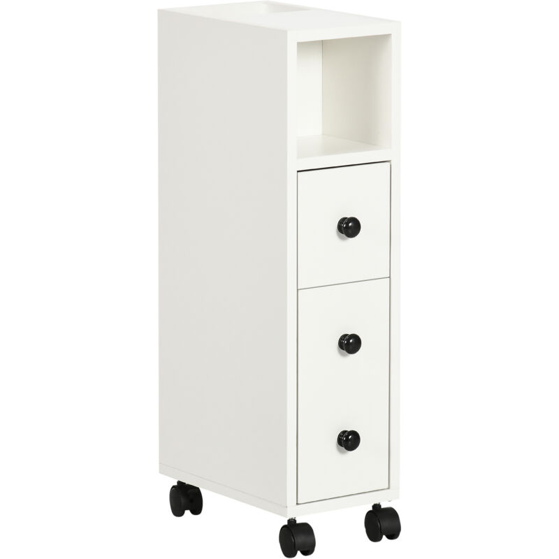 Kleankin - Slim Bathroom Storage with 2 Drawers, 2 Open and Wheels, White
