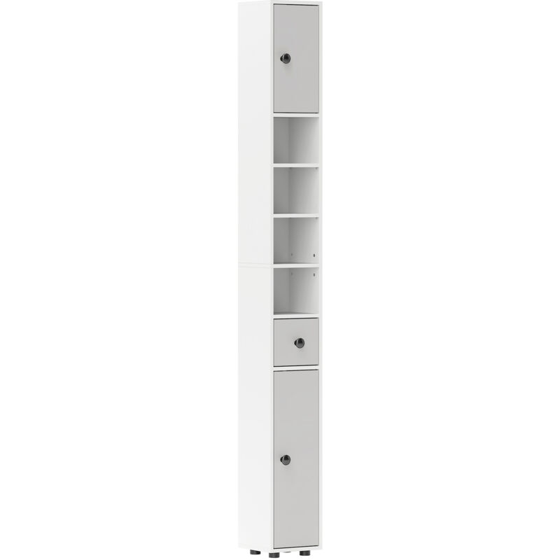 Kleankin 180cm Slim Bathroom Cabinet with 9-layered Independent Storage, Narrow Stoage Cabinet for Family-friendly Storage, White Aosom UK