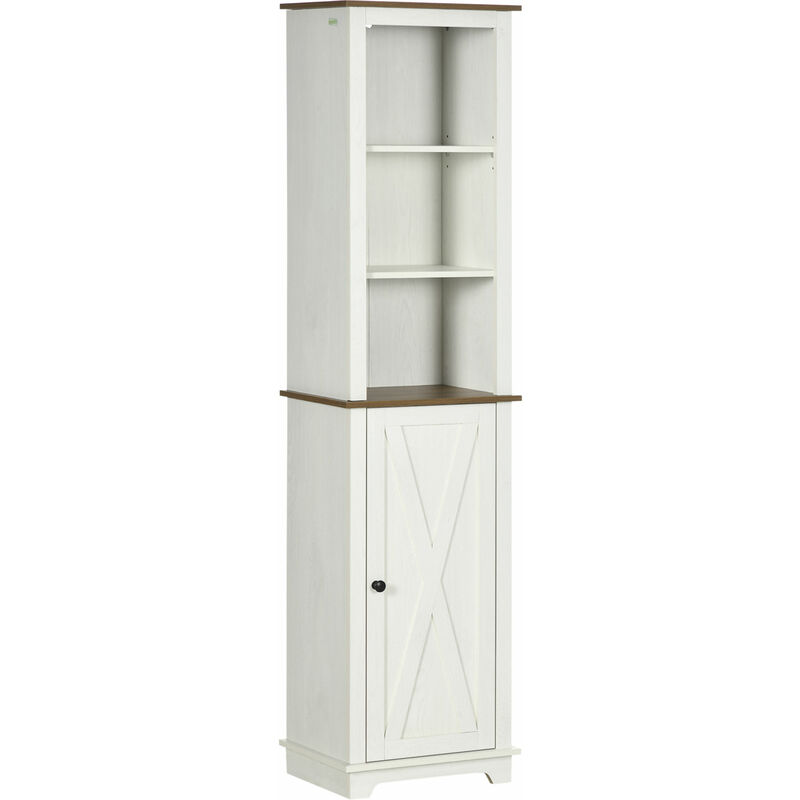Kleankin - Tall Bathroom Cabinet Storage Cupboard with Door, Adjustable Shelves