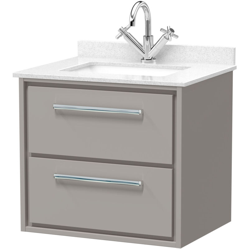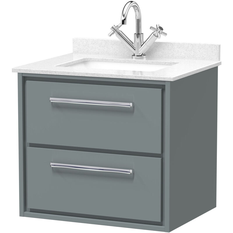 Balterley 600mm Wall Hung 2 Drawer Vanity with Marble Worktop Basin - Coastal Grey