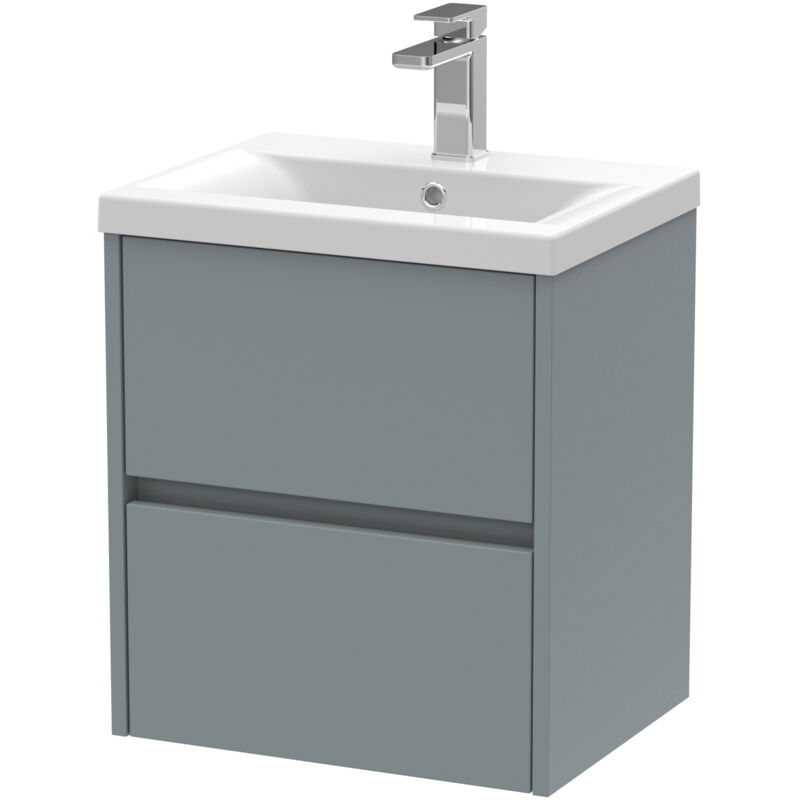 Balterley Square Wall Hung 2 Drawer Vanity Unit & Ceramic Basin, 500mm - Matt Coastal Grey