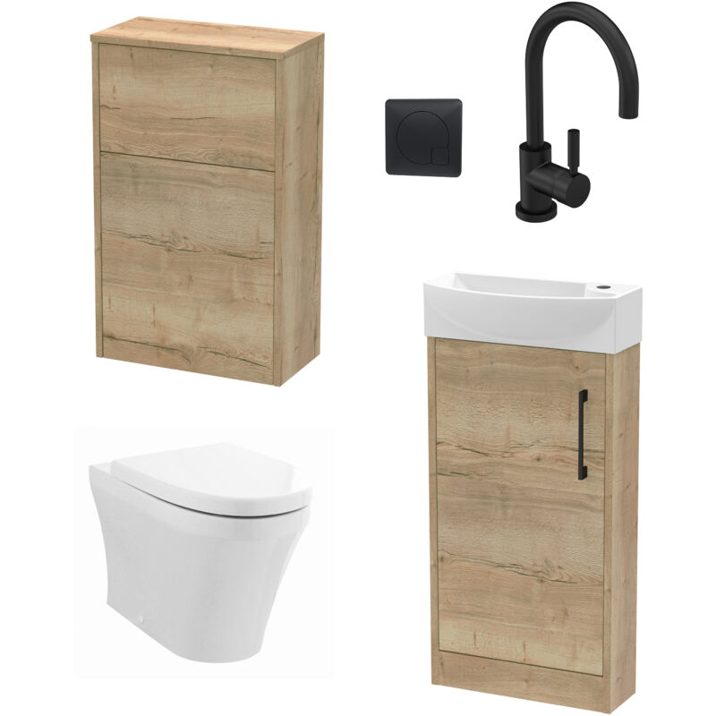 Balterley Cloakroom Suite - Left Hand 440mm Vanity, wc Unit, Toilet and Tap - Oak/Black