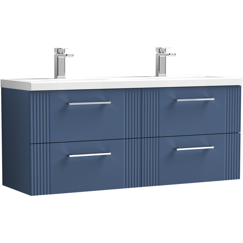 Balterley Partial Fluted 4 Drawer Wall Hung Vanity Unit with Double Ceramic Basin - 1200mm - Satin Blue