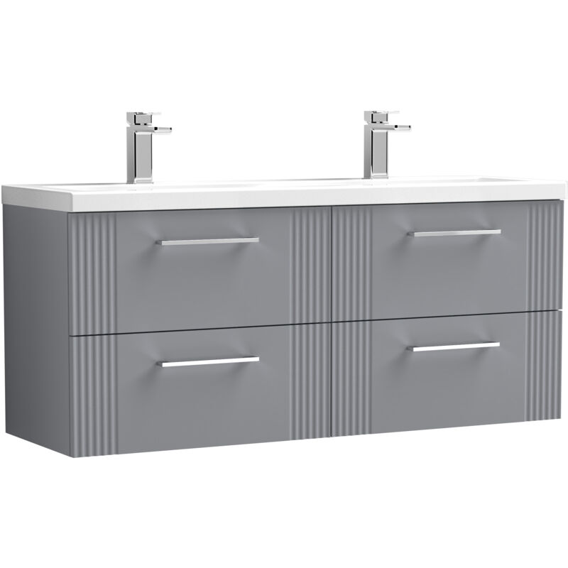 Balterley Partial Fluted 4 Drawer Wall Hung Vanity Unit with Double Ceramic Basin - 1200mm - Satin Grey