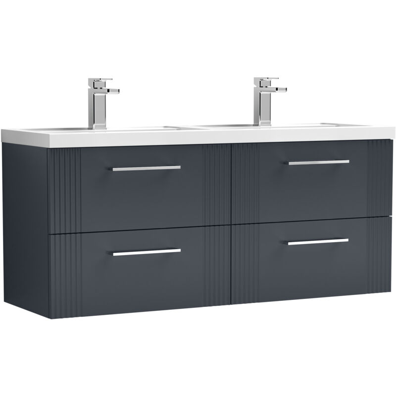 Balterley Partial Fluted 4 Drawer Wall Hung Vanity Unit with Double Ceramic Basin - 1200mm - Satin Dark Grey