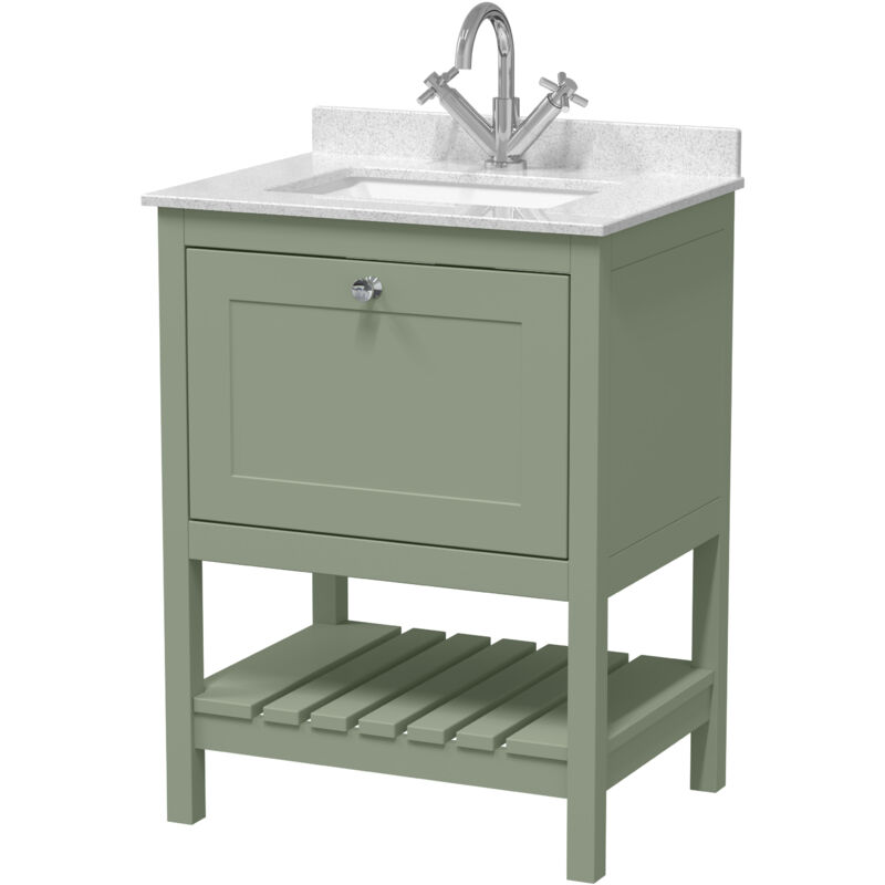 Balterley Traditional Furniture Floor Standing 1 Drawer Vanity & 1 Tap Hole Marble Worktop & Basin, 600mm, Fern Green