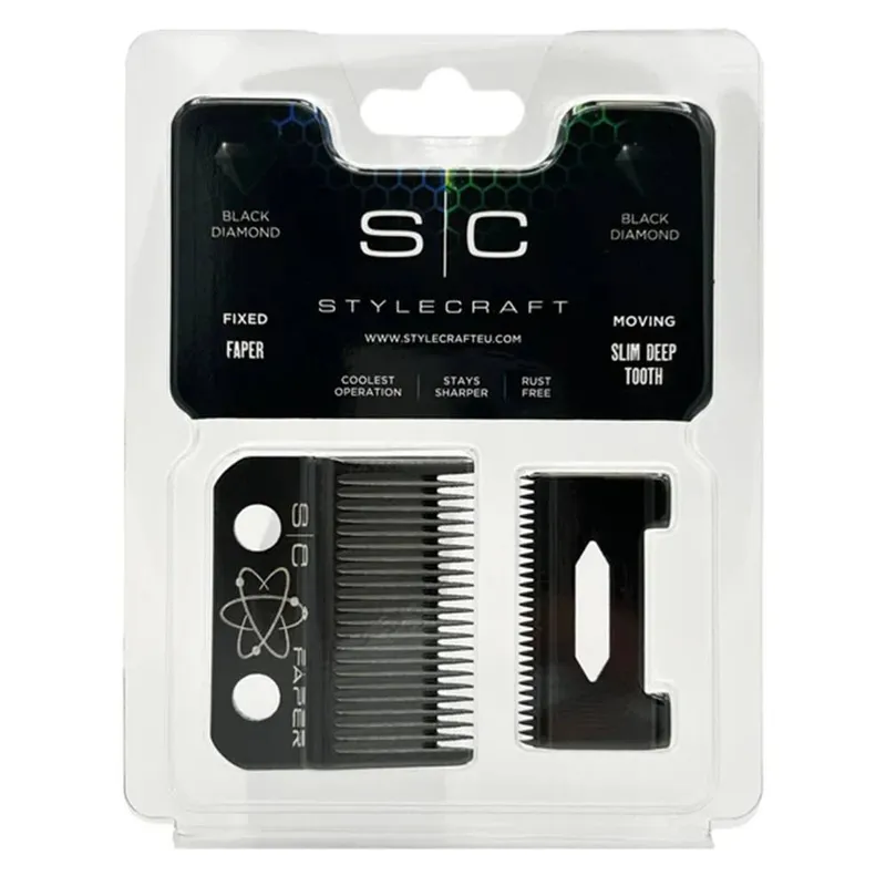 StyleCraft Unisex Clipper Blade Set - DLC Fixed Faper Blade w/ Slim Deep Tooth Cutter in Black Black One Size female
