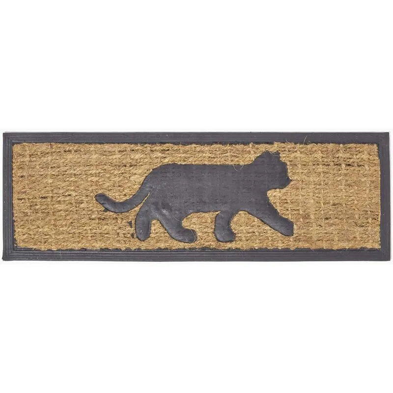 Black Cat Silhouette Non-Slip Coir Doormat - Homescapes