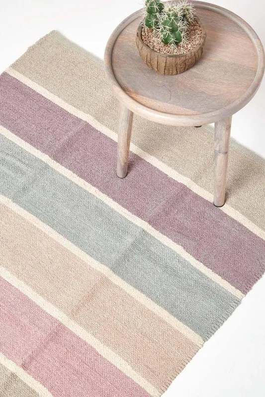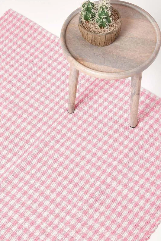Homescapes Cotton Gingham Check Rug Hand Woven in Pink Size: 70 cm x 120 cm Pink 70 cm x 120 cm
