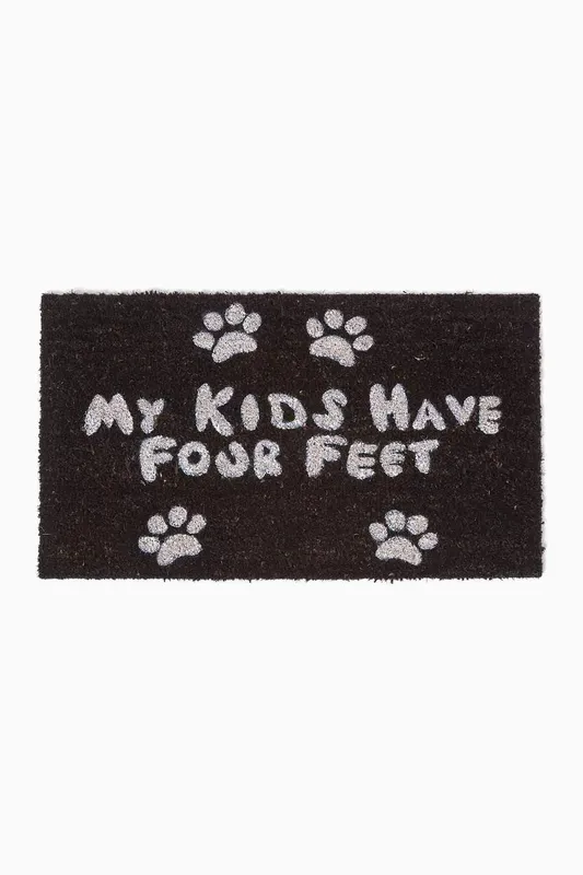 Homescapes Four Feet Paws Coir Doormat in Black Size: 40 cm x 70 cm Black 40 cm x 70 cm