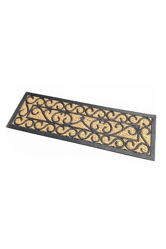 Homescapes Scroll Rubber & Coir Doormat in Natural Size: 25 cm x 75 cm Natural 25 cm x 75 cm
