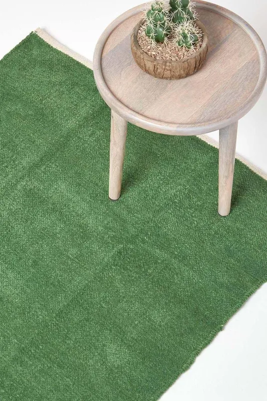 Homescapes Cotton Tufted Rug Union Jack Plain Embossed Mat in Green Size: 50cm x 80cm - Green - Size: 50cm x 80cm