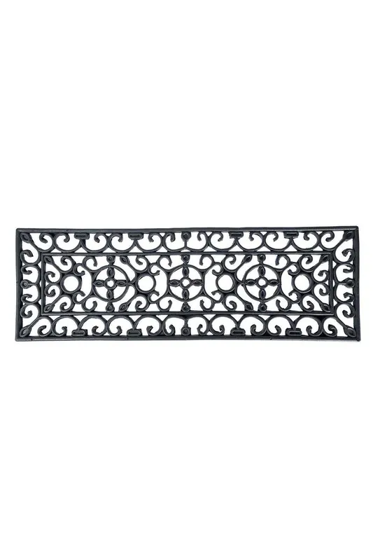 Homescapes Unisex Black Wrought Iron Effect Parisian Rubber Doormat 75 x 25cm Size: 25cm x 75cm Black 25cm x 75cm female