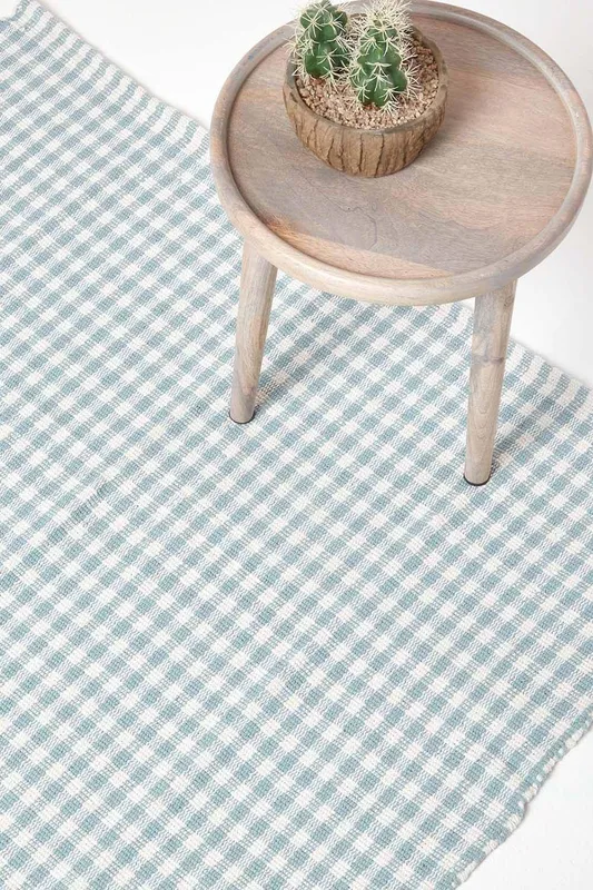 HOMESCAPES Cotton Gingham Check Rug Hand Woven Green White, 60 x 90 cm