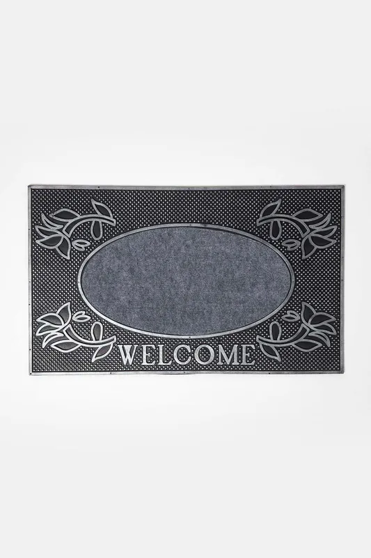 Homescapes Welcome' Door Mat, 75 x 45 cm in Silver Size: 45 cm x 75 cm Silver 45 cm x 75 cm