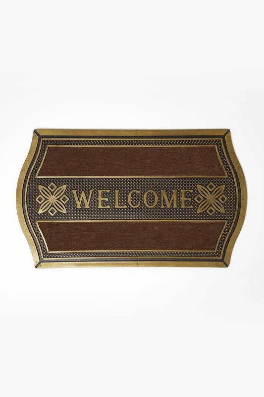 Homescapes Welcome' Door Mat with Curved Edge, 75 x 45 cm in Gold Size: 45cm x 75cm - Gold - Size: 45cm x 75cm
