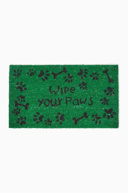 Homescapes Wipe Your Paws Coir Door Mat in Green Size: 40cm x 70cm - Green - Size: 40cm x 70cm