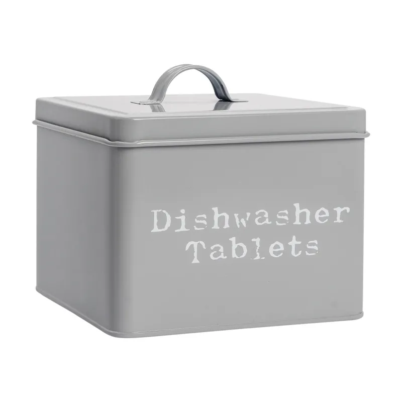 Harbour Housewares Dishwasher Tablets Canister - Vintage Metal Home Kitchen Storage Containers in Grey Grey