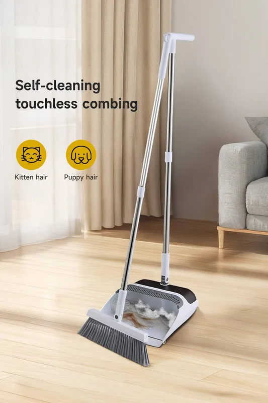 Living and Home Folding Broom and 90° Rotable Dustpan with 180° Rotating Head Cleaning Tools Set in White - White - Size: One Size