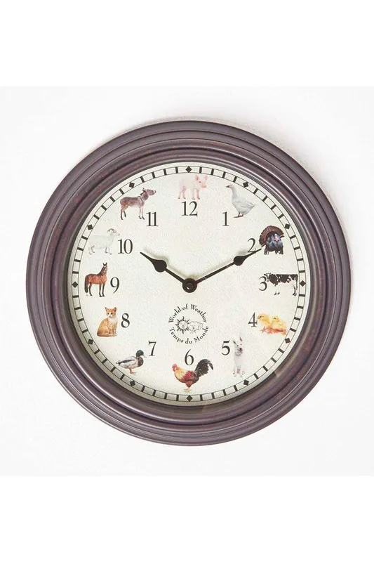 Homescapes Farm Animal Sounds Quartz Wall Clock in Brown - Brown - Size: One Size