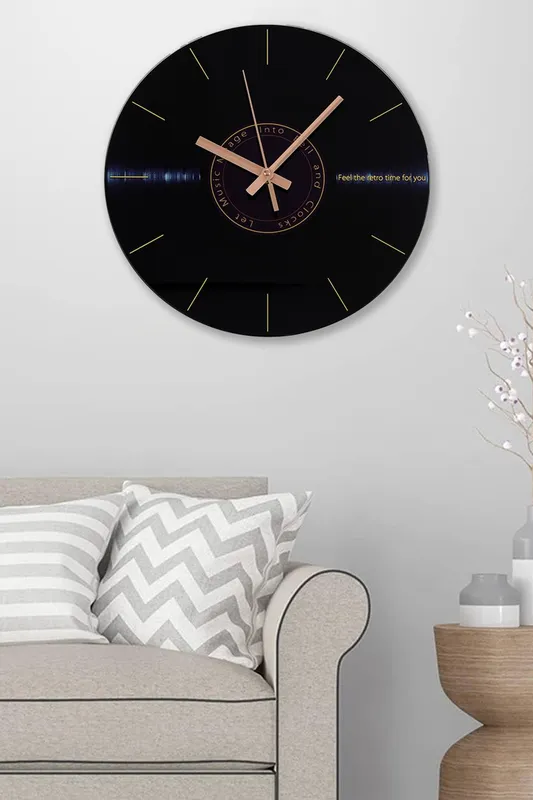 Living and Home 30cm Dia Round Vinyl Record Style Wall Clock with Gold Needle in Black Black