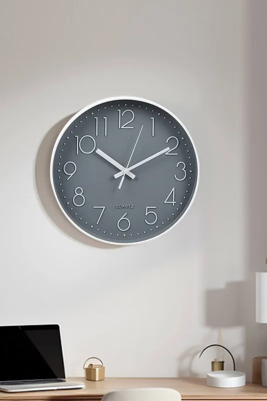 Living and Home Unisex 12-Inch Minimalist Wall Clock w/ Arabic Numerals in Grey Grey One Size female