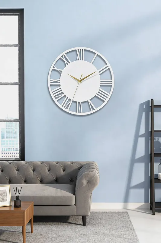 Living and Home Unisex 30cm Dia Wooden Round Hollow Roman Numeral Wall Clock w/ Metal Hands in White White One Size female