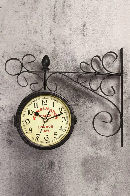 Living and Home Unisex Antique Metal Double Sided Wall Clock in Black Black One Size female