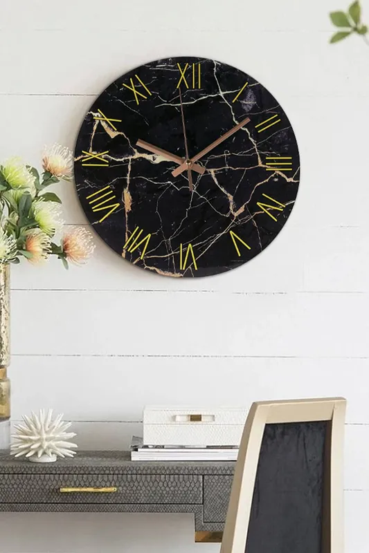 Living and Home Unisex Black Modern Marble Texture Clock Rustic Kitchen Decor 12 Inch Wall Clock Black One Size female