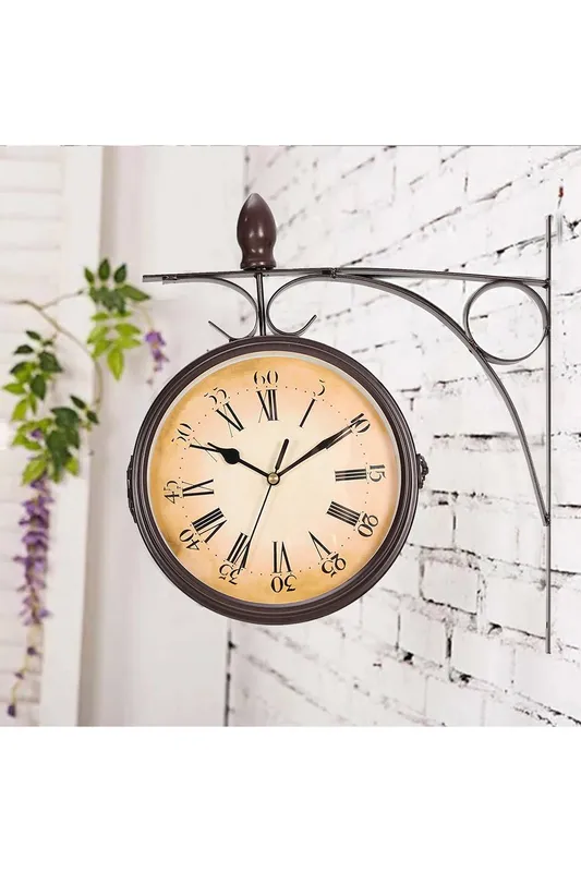 Living and Home Unisex European Retro Double Sided Wall Clock in Black Black One Size female