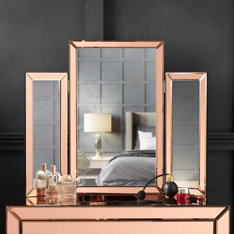CARME HOME Paloma Rosegold Tri-Fold Mirror in Rose Gold Rose Gold