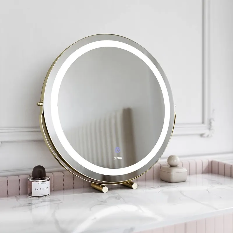 CARME HOME ZaraGold Touch Sensor LED Light Mirror in Gold - Gold - Size: One Size