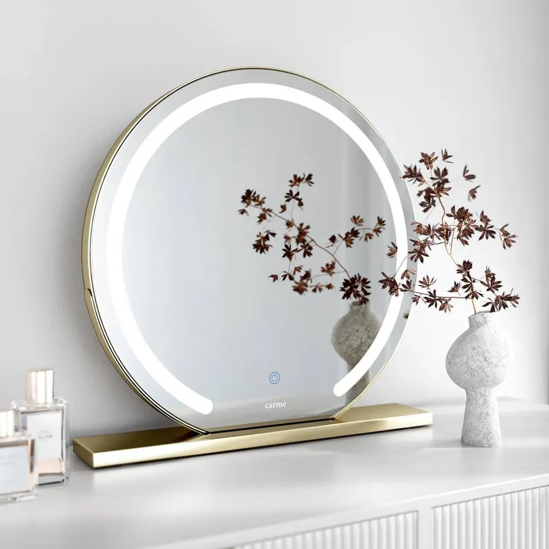 CARME HOME Unisex Elsie Large Gold Touch Sensor LED Makeup Mirror w/ Lights Gold One Size female