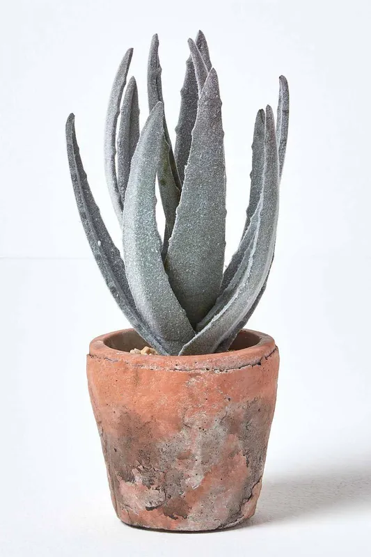 Homescapes Aloe Vera Artificial Succulent in Decorative Rustic Terracotta Pot in Green - Green - Size: One Size