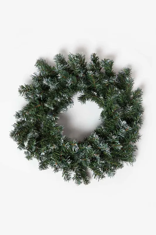 Homescapes Green Snow Dusted Christmas Wreath, 18 Inches Green
