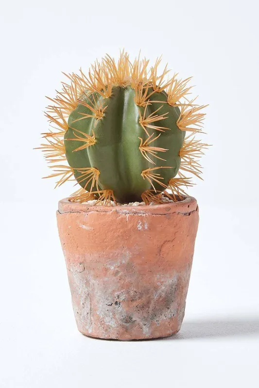 Homescapes Unisex Small Round Artificial Cactus in Terracotta Pot, 15cm Tall in Orange Orange One Size female