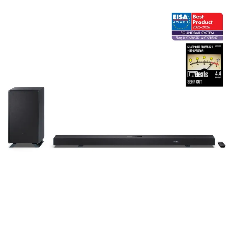 Sharp HT-SBW55121 Q 5.1.2 Dolby Atmos DTS:X Soundbar with Wireless Subwoofer in Black Black