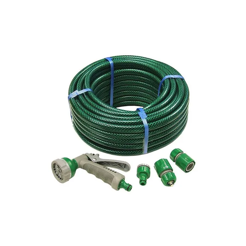 Faithfull Pvc Reinforced Hose 15M Fittings & Spray Gun in Green Green