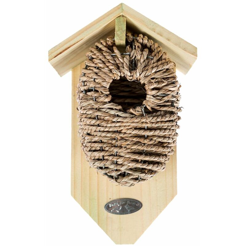 Wooden Bird Box with Seagrass Birdnest - Natural - Natural - Homescapes