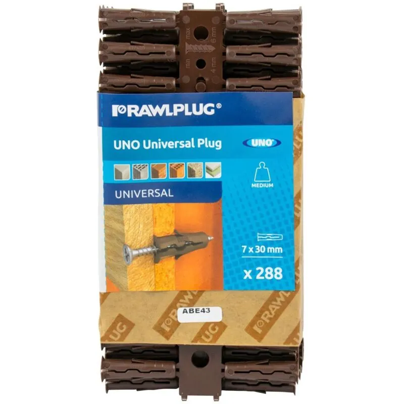Rawlplug - R-U1-MIX-BRN-288 Brown uno Plugs 7 x 30mm (Pack 288) RAW68565