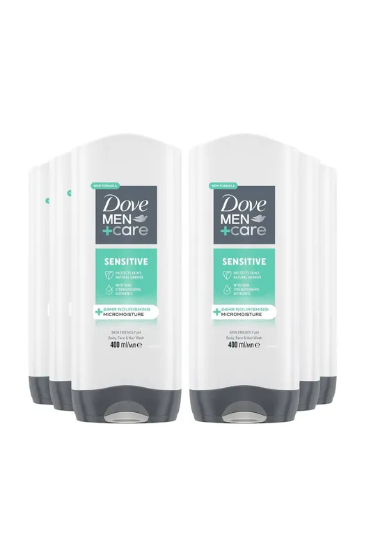 Dove Men's Men+Care 3-in-1 'Hair, Body & Face Wash' Eucalyptus, 6x400ml in Grey Grey