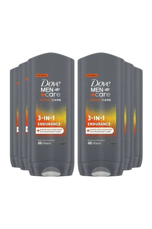 Dove Men's Men+Care 'Hair, Face & Body Wash', 3 in 1 Endurance,6x400ml in Grey Grey One Size female