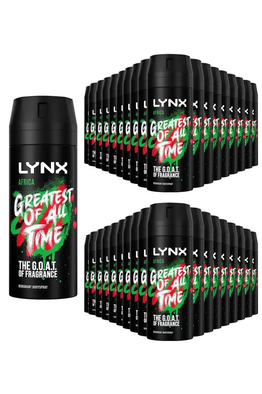 Lynx Men's Africa Body Spray Deodorant 48Hrs HD Fragrance 150ml, 36 Pack in Black Black One Size female